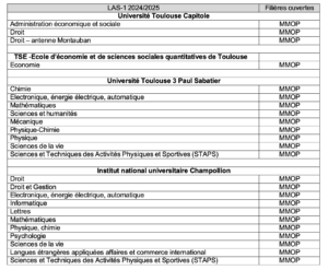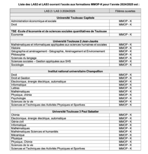 Quelles sont les Licences éligibles sur Toulouse en LAS 2 ?